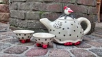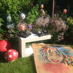 - Keramiek expositie van Atelier 6, in de prachtige tuin verspreid. Vazen, dieren, Boeddha en poppen.