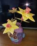 - Er is een grote kunstroute in meerdere dorpen en met verschillende disciplines van Atelier 6 sta ik in de kleuterschool. Grote expositie en ook verkoop van keramiek, hout, schilderijen en Tiffany .