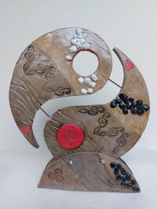 Vrouw, abstract met ronde lijnen en met fijne glimmertjes in matte glazuur.