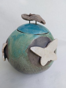 Sierlijke pot met vlinders, Raku gestookt