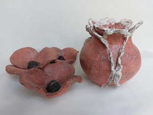 set van Pop en vaas, Raku gestookt.