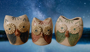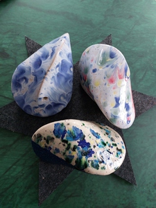 3 Oloides in verschillende multi gekleurde glazuren. De rode is verkocht.