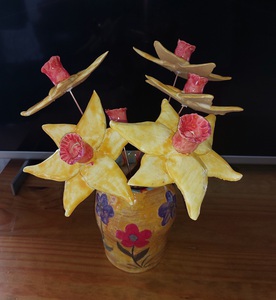 De bloemen kunnen op een bamboestokje staan.